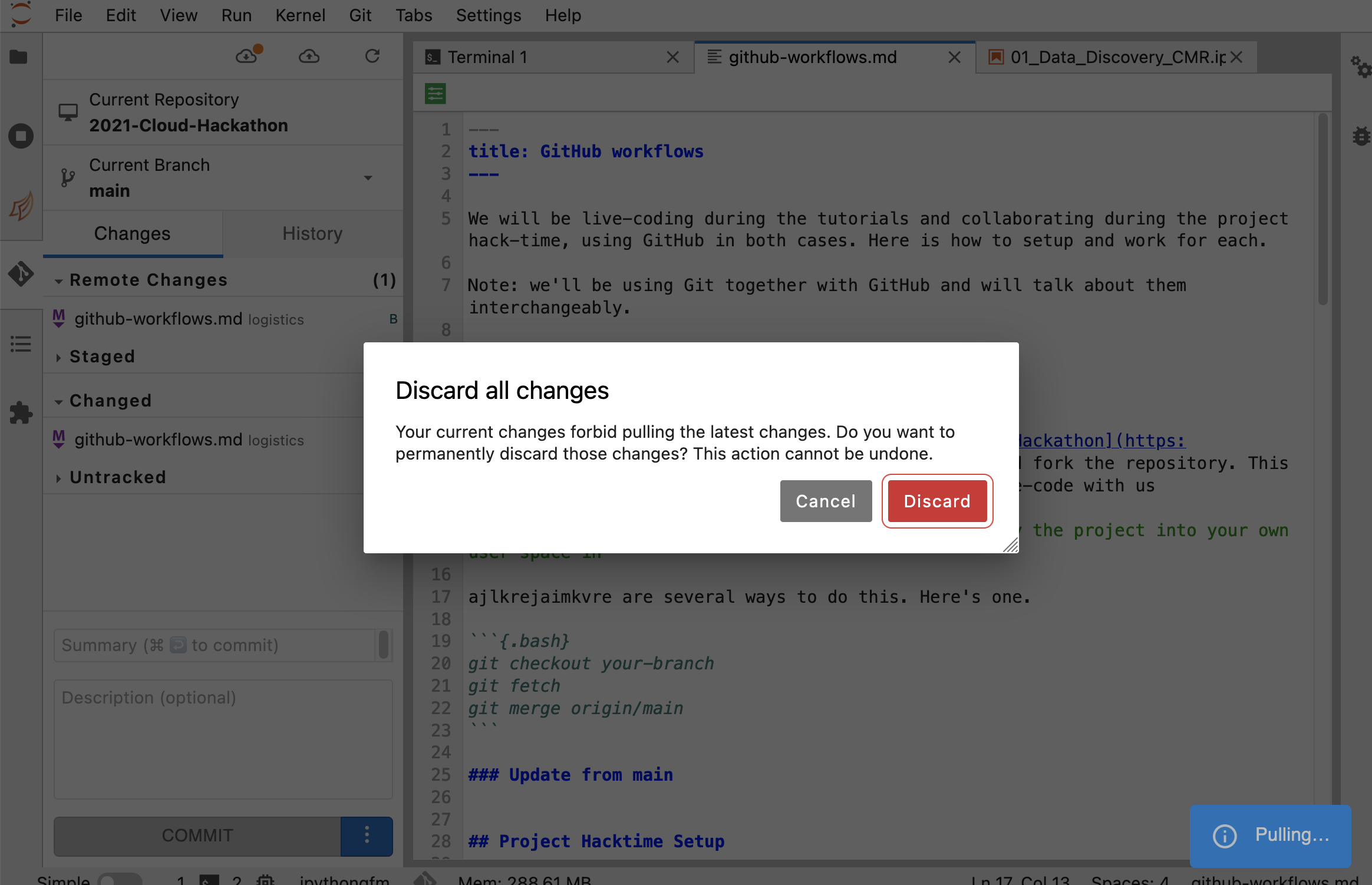 You could also do the above in the terminal, making sure you are in the 2021-Cloud-Hackathon