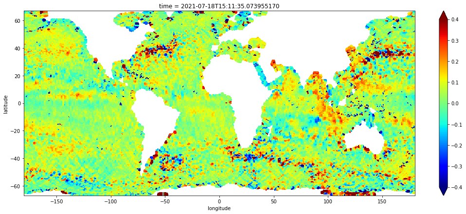 =slice(-67.0, 67.0)).plot(vmin=-0.4, vmax=0.4, cmap="jet", figsize=(18, 7)) grid.sel(latitude