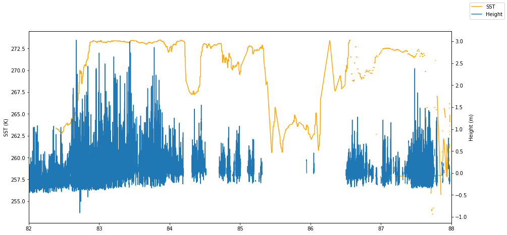 Plot SST and Height along track